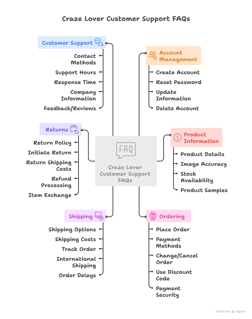 Find answers about orders, shipping, tracking, and returns from Craze Lover.
